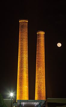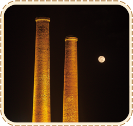 田川では、「石炭」と「石灰石」の両方が豊富に採れました。炭坑時代、「石炭」は「黒ダイヤ」と呼ばれ、「石灰石」は「白ダイヤ」と呼ばれていました。「石炭または石灰から作るコークス」と「石灰石」を釜で一緒に燃やして「生石灰」とし、それを水と反応させて作られる「消石灰」は「漆喰(しっくい)」原料の一つ。「漆喰」の原料になる「消石灰」の製造は100年以上前から続く田川の代表的な産業です。田川は漆喰製造の地として最適だったのです。