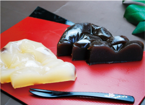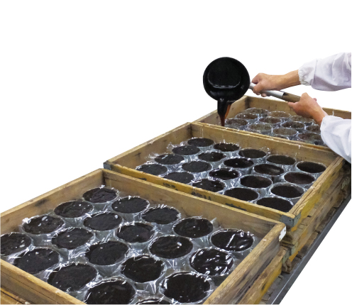 石炭をイメージしてつくられた羊羹「黒ダイヤ」は今でも約70年前と変わらない製法でひとつひとつ丁寧に作られています。