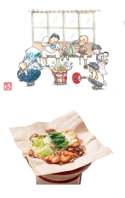 炭坑の中で汗を流し懸命に働く人たちは、美味しくて栄養満点の「ホルモン鍋」をよく食べていました。当時は、七輪の上にセメント袋をのせ、ホルモンを野菜と一緒に焼いて食べていたそうです。「ホルモン鍋」は炭坑で働く人たちだけではなく、飲食店や各家庭にも広まっていきました。そして、今では田川のソウルフードとなっています。